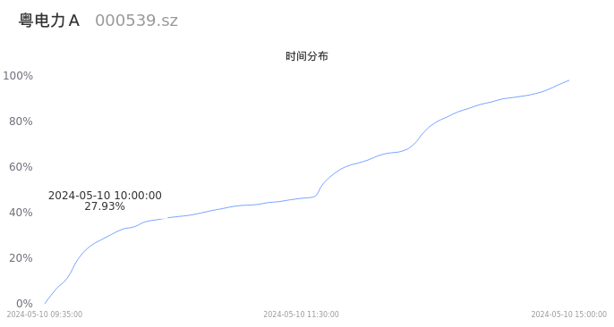 根据成交分布分析,该股票当天放量成交,成交清淡。时间上看,早盘前半小时成交量占据当天总成交量的27.93%;价格上看,成交呈现左偏峰。成交分布分析主要研究股票成交的分布特性,不具有预测功能,请知悉。