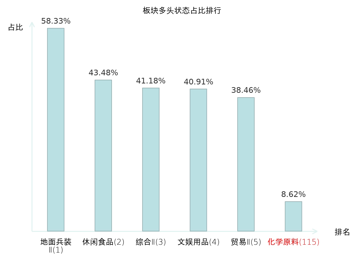 从主力宝信号数据分析,金浦钛业所属的化学原料板块中共有5只股票处于主力多头状态,主力多头状态占比在全行业中排名第115位,较昨日下降21位。较高的排名表明主力对于该板块整体看多意愿较强,此次排名下降可能反映了主力对化学原料板块态度的调整。全市场所有行业板块中,地面兵装Ⅱ板块的主力多头状态占比最高,位居第一。林业Ⅱ板块名次提升最快,较昨日上升90位。这些变动揭示了主力资金在不同行业间的偏好变化,为投资者理解市场动态和趋势提供了重要参考。