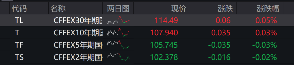 债市:国债期货涨跌不一,30年期主力合约涨0.05%,10年期主力合约涨0.03%,5年期主力合约跌0.03%,2年期主力合约跌0.02%。