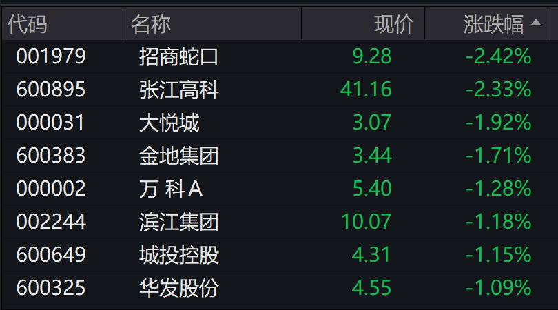 地产股延续疲软态势,万科A跌1.28%,此前曾一度跌3%,续创2015年8月以来新低,华夏幸福、信达地产、金地集团、招商蛇口等跟跌。
