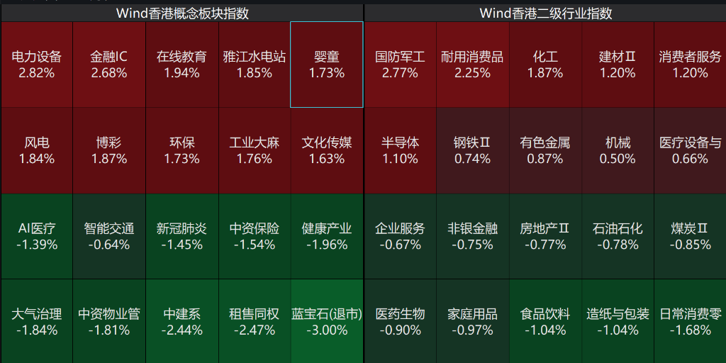 板块方面,电力设备、金融IC概念强势领涨,婴童、国防军工、耐用消费品等板块集体走强;下跌方面,租售同权、中建系等地产链普遍调整,蓝宝石、医药生物等板块同步走弱。