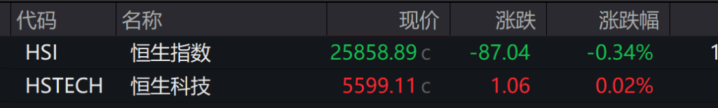 港股:截至收盘,恒指窄幅震荡收跌0.34%,恒生科技指数涨0.02%。