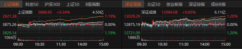 上证报中国证券网讯11月28日,A股三大指数集体上涨,截至收盘,上证指数涨0.34%,深证成指涨0.85%,创业板指涨0.70%。全市场成交1.59万亿元,较上日成交额缩量1254亿元。全市场超4100只个股上涨。