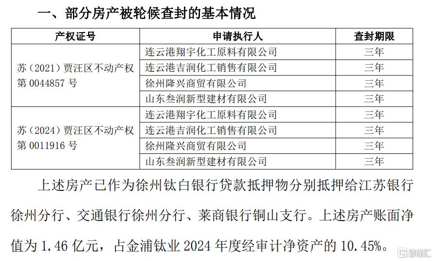 金浦钛业(000545.SZ):全资子公司徐州钛白房产被轮候查封