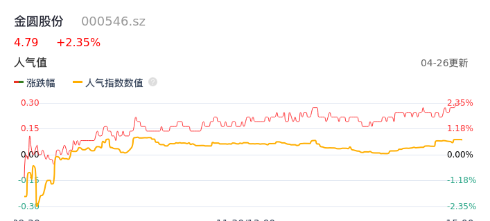 04月26日,金圆股份收报4.79,股价涨幅2.35%,成交金额7357.84万元,换手率2.19%。