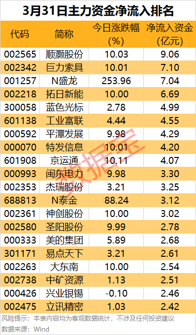 据证券时报·数据宝统计,今日(3月31日)沪深两市主力资金净流出493.6亿元,其中创业板净流出249.7亿元,沪深300成份股净流出151.54亿元。