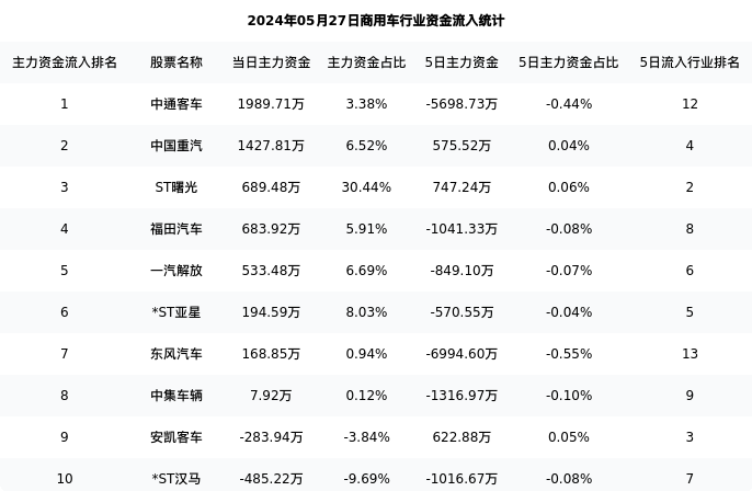 从主力资金流向来看,商用车行业今日主力资金流入12.62亿元,在所有申万二级行业中排名:37/131。
