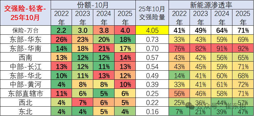 新能源轻客主要是发达地区的需求较大,华南地区新能源表现较强。受路权政策约束,京津沪等城市地区的燃油轻客销量出现萎缩。