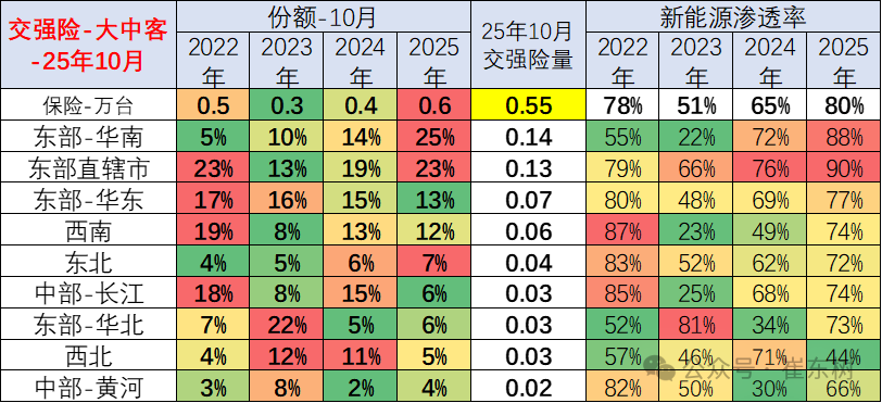 新能源大中客市场渗透率较高的主要是南方地区,其它地区看政策补贴,今年的东北和华北的公交启动较早。