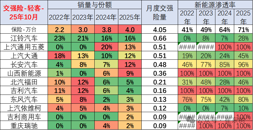 2025年10月商用车新能源渗透率33%, 较同期增长8个点,而1-10月同比增长7个点,强于乘用车的增长。