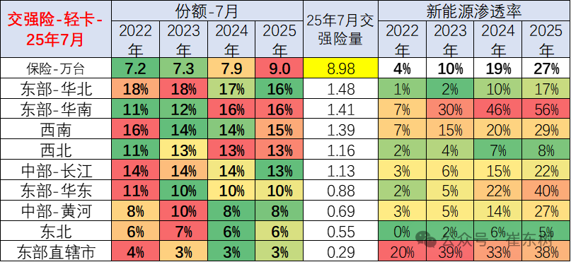 新能源轻卡主要的市场还是在东部—华南市场和华东市场表现相对较强,7月的华东、华南市场因关税贸易战走弱,而京津沪的直辖市市场总体来看今年相对恢复。