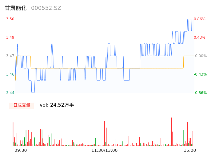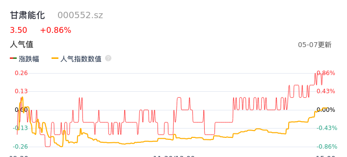 05月07日,甘肃能化收报3.50,股价涨幅0.86%,成交金额8504.90万元,换手率0.82%。