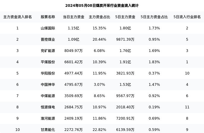 从主力资金流向来看,煤炭开采行业今日主力资金流入48.85亿元,在所有申万二级行业中排名:39/131。