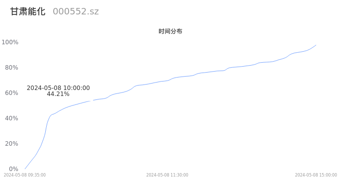 000552甘肃能化2024年05月08日成交28.18万手,成交金额9957.53万元,相较昨日放量3.66万手,换手率0.94%,成交清淡。