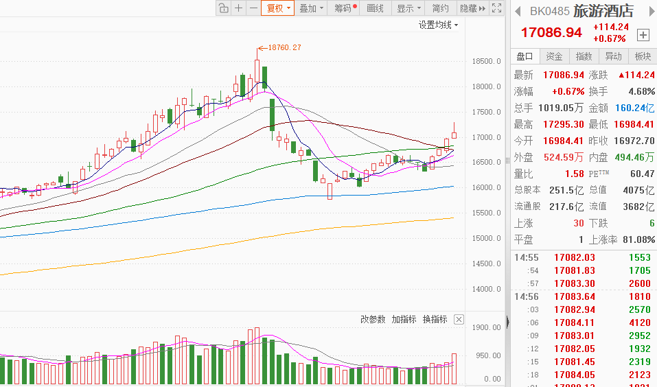 大盘分析及后市展望:外围市场一片低迷之际,A股开始如期大幅低开,但之后快速反弹,午盘前顺利翻红,午后在电网设备等板块带动下持续拉升。相对外围,A股明显较强的原因在中国仓储指数变好、市场有钱流进来、热门板块活跃等。热点方面,开盘后,海南自贸区率先拉升,并带动天津自贸区走强。冰雪产业、旅游酒店、饮料制造、体育产业、家电、零售、免税店等大消费板块快速翻红。煤炭、油气开采、页岩气、可燃冰等能源股震荡上行,电网设备持续走高,三大指数翻红。午后,电网设备、智能电网、虚拟电厂、电力物联网、高压快充、光伏设备、充电桩等细分板块集体上攻,创业板指涨超1%。
