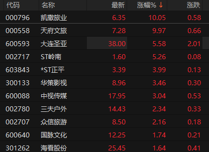 上证报中国证券网讯 9月10日午后,旅游概念股拉升,截至13时27分,天府文旅涨停,凯撒旅业此前封板,大连圣亚、三夫户外等跟涨。