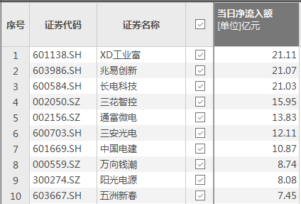 资金风向标 | 工业富联获资金净流入21.11亿元
