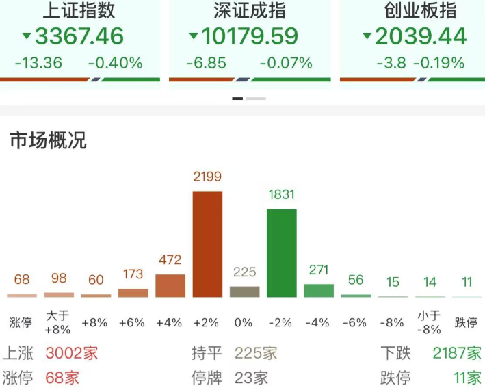 大盘分析及后市展望,周五,A股小幅低开,沪指低开0.18%,深成指低开0.28%,创业板指低开0.36%。随后全天A股窄幅震荡,呈现沪弱深强的格局。金融股遭遇集体回调,银行、保险、证券板块盘中跌幅均超过1%。而人形机器人和汽车零部件板块则表现出强劲的反弹势头,引发了一波涨停潮。此外,算力板块也震荡走高,市场继续呈现出板块轮动的态势。尽管指数表现不尽如人意,但两市仍有3000只股票呈现上涨态势。