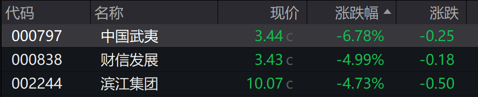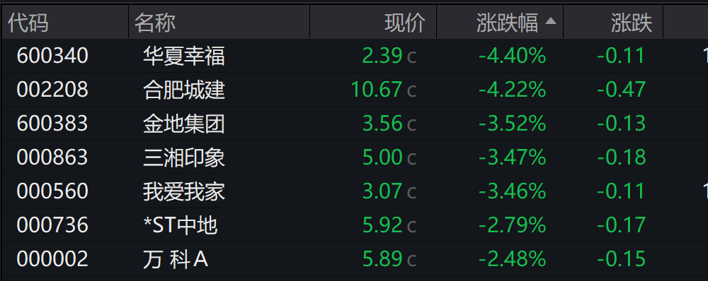 A股房地产板块探冲高回落,中国武夷跌超6%,万科A跌超2%,滨江集团财信发展我爱我家合肥城建跟跌。
