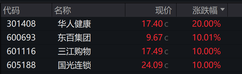 海欣食品回封涨停,欢乐家直线暴拉20%涨停,东百集团三江购物欢乐家益客食品快速拉升。