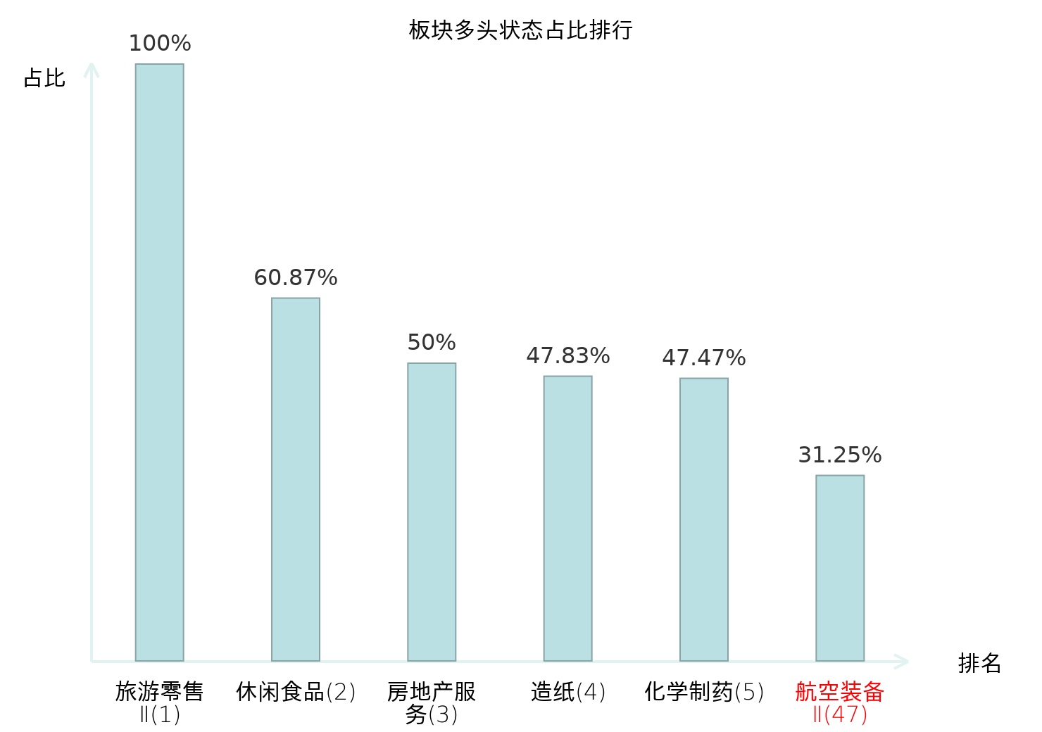 全市场所有行业板块中主力多头状态占比排名中,旅游零售Ⅱ板块位居第一。种植业板块名次提升最快,较昨日上升49位。