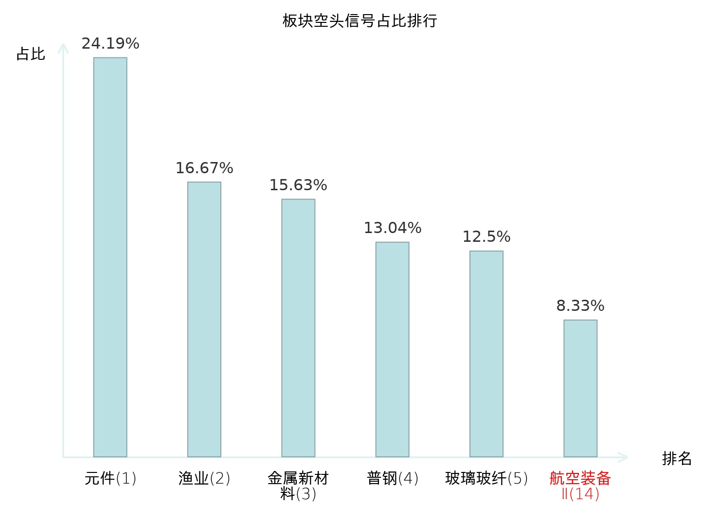 全市场所有行业板块中主力空头信号占比排名中,元件板块位居第一。电子化学品Ⅱ板块名次提升最快,较昨日上升115位。