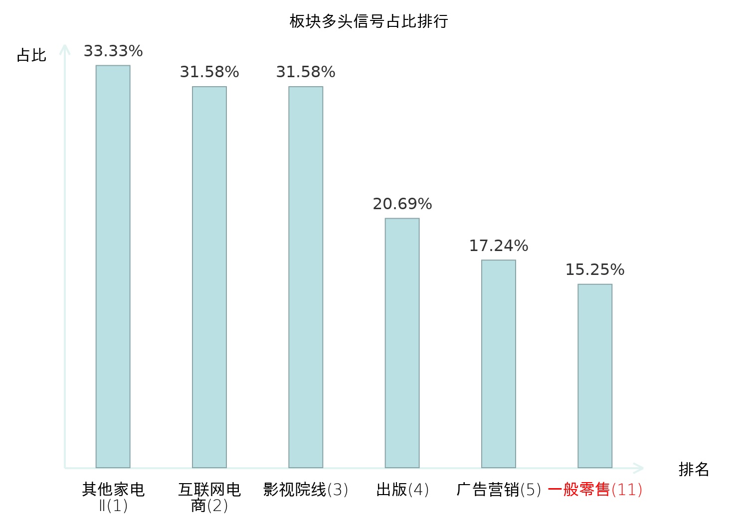 全市场所有行业板块中主力多头信号占比排名中,其他家电Ⅱ板块位居第一。其他家电Ⅱ板块名次提升最快,较昨日上升128位。