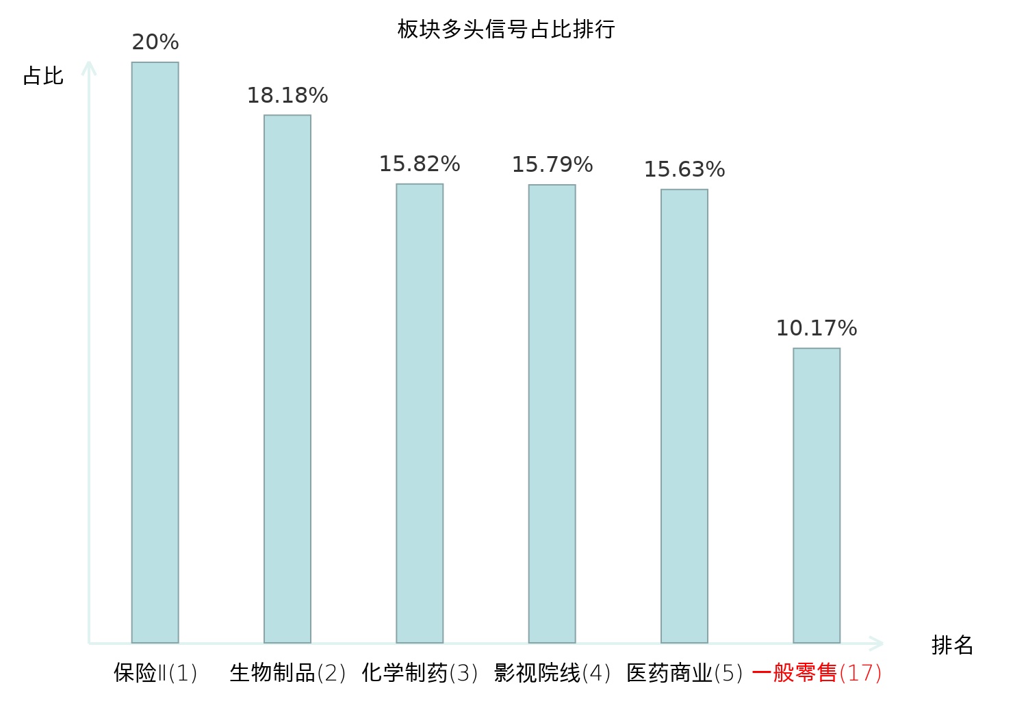 全市场所有行业板块中主力多头信号占比排名中,保险Ⅱ板块位居第一。保险Ⅱ板块名次提升最快,较昨日上升125位。