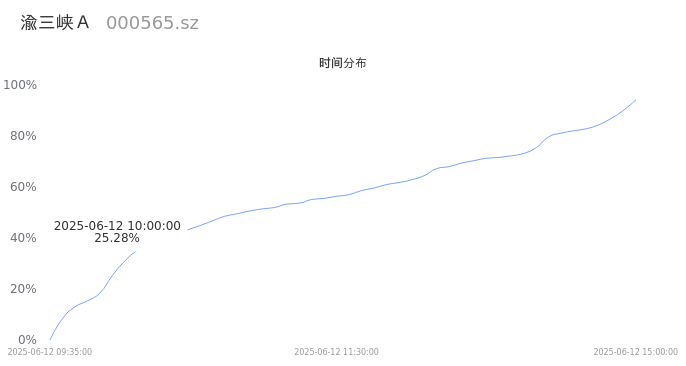 000565渝三峡A2025年06月12日成交37.81万手,成交金额3.54亿,相较昨日缩量8.05万手,换手率8.72%,成交清淡。