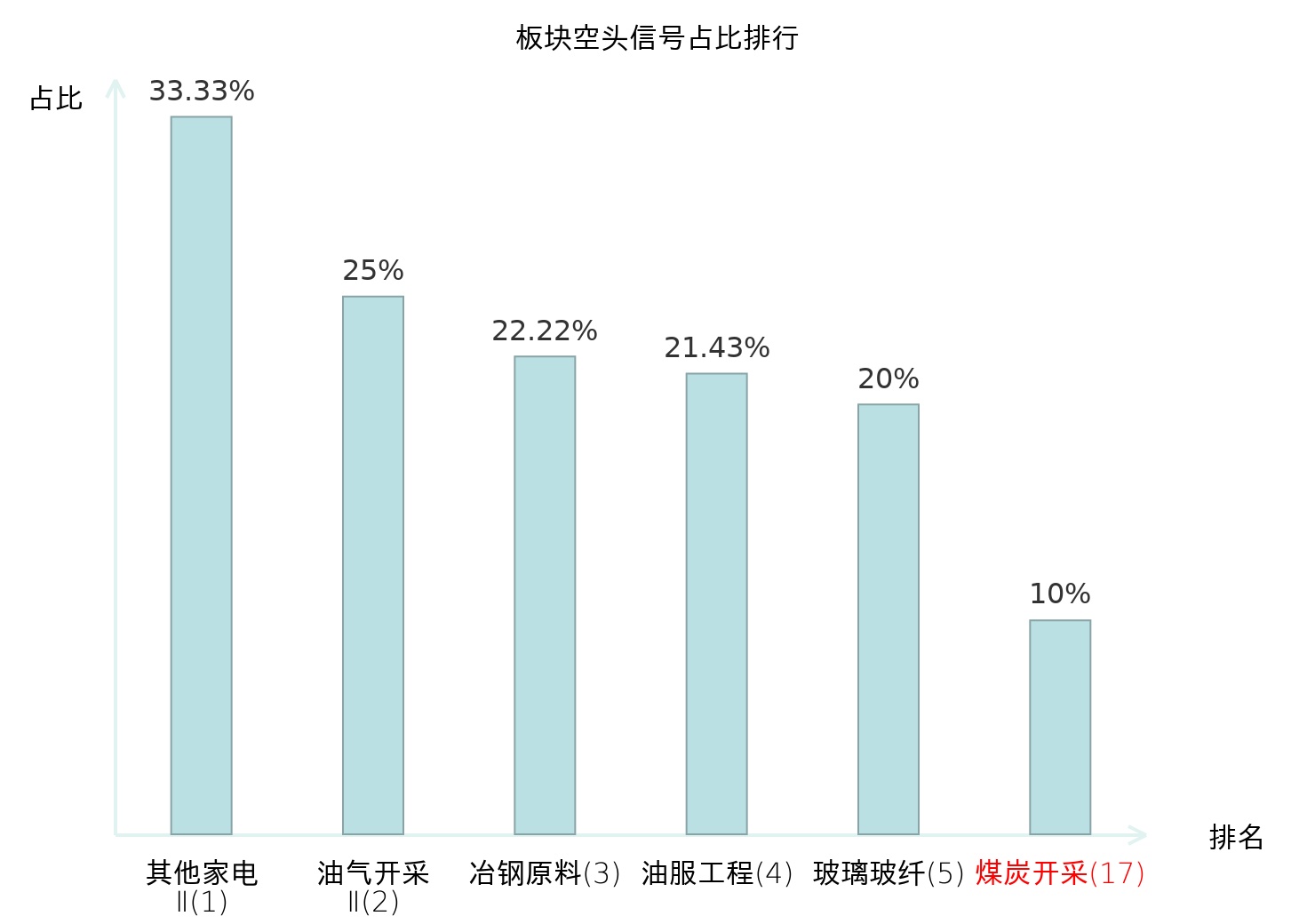 全市场所有行业板块中主力空头信号占比排名中,其他家电Ⅱ板块位居第一。铁路公路板块名次提升最快,较昨日上升113位。