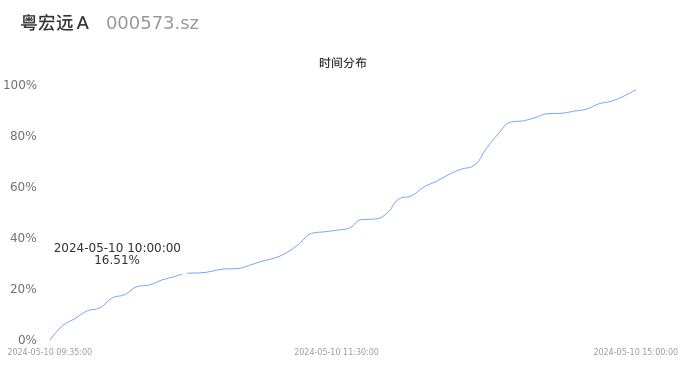 000573粤宏远A2024年05月10日成交19.20万手,成交金额5266.13万元,相较昨日放量5.20万手,换手率3.03%,成交清淡。