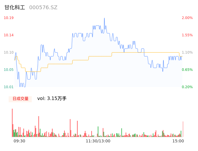 09月15日,甘化科工收报10.11,股价涨幅1.20%,成交金额3184.14万元,换手率0.73%。