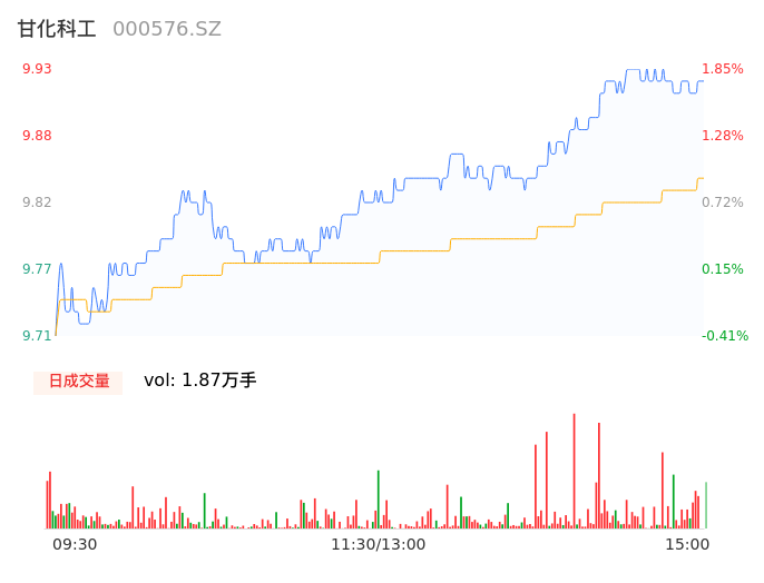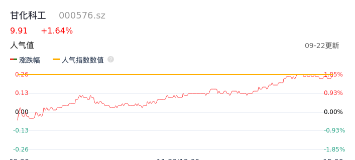 09月22日,甘化科工收报9.91,股价涨幅1.64%,成交金额1842.36万元,换手率0.44%。