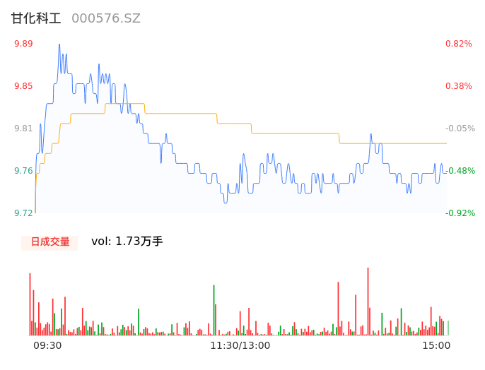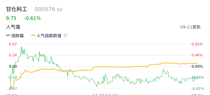 09月21日,甘化科工收报9.75,股价涨幅-0.61%,成交金额1688.30万元,换手率0.40%。