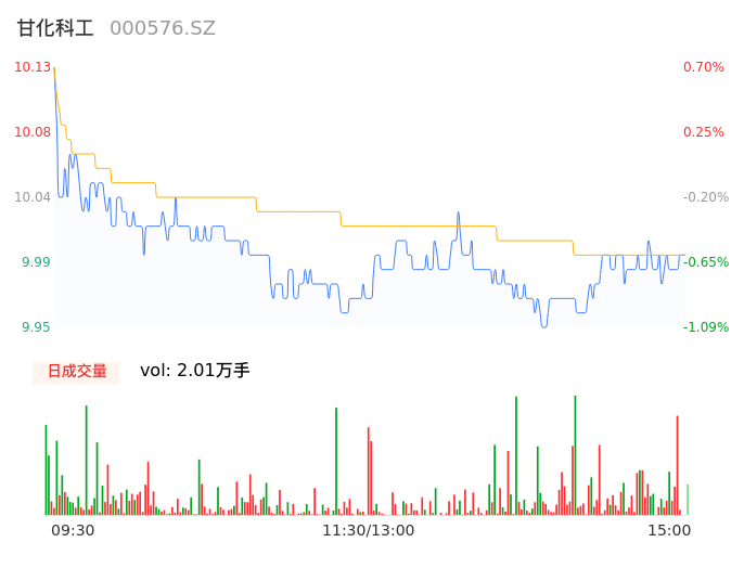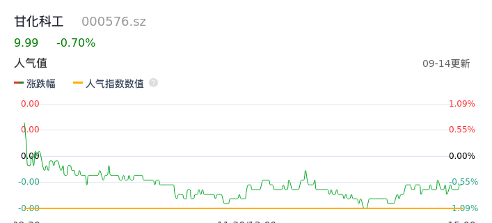 09月14日,甘化科工收报9.99,股价涨幅-0.70%,成交金额2008.98万元,换手率0.47%。