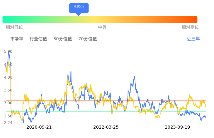 甘化科工当前市净率PB为2.41,在所属的地面兵装中,市净率PB排4,前五名分别为内蒙一机市净率1.38、银河电子市净率1.96、中兵红箭市净率2.11、甘化科工市净率2.41、光电股份市净率2.56。甘化科工当前市净率PB为2.41,超过近3年4.95%的历史数据。