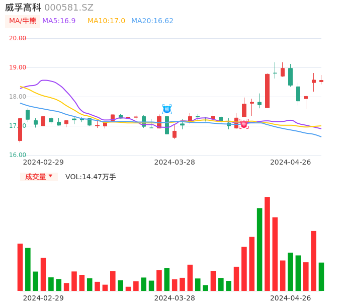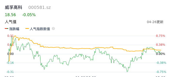 04月26日,威孚高科收报18.56,股价涨幅-0.05%,成交金额2.69亿元,换手率1.76%。