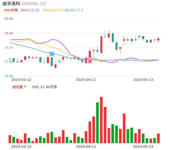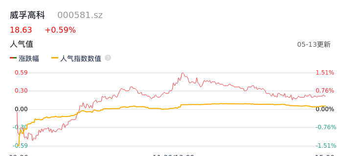 05月13日,威孚高科收报18.63,股价涨幅0.59%,成交金额2.12亿元,换手率1.39%。