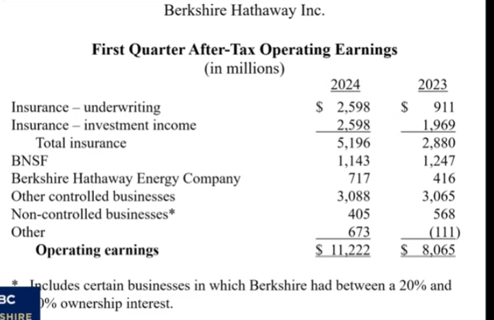 伯克希尔第一季度112.2亿美元的营业利润主要来自保险业务——该公司第一季度保险业务营利高达52亿美元。