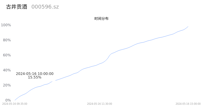 000596古井贡酒2024年05月16日成交1.13万手,成交金额2.99亿元,相较昨日放量967手,换手率0.28%,成交清淡。