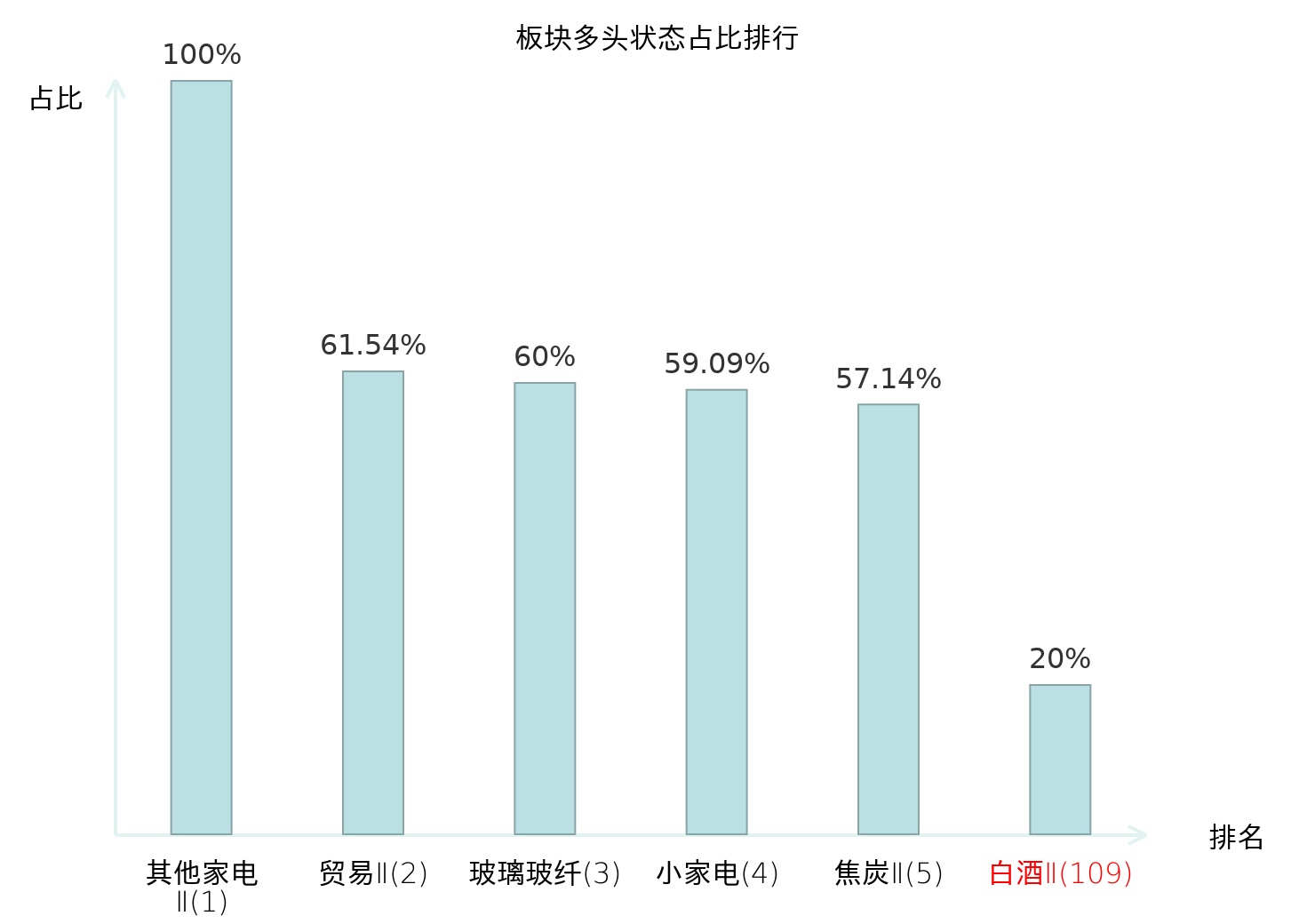 全市场所有行业板块中主力多头状态占比排名中,其他家电Ⅱ板块位居第一。摩托车及其他板块名次提升最快,较昨日上升76位。