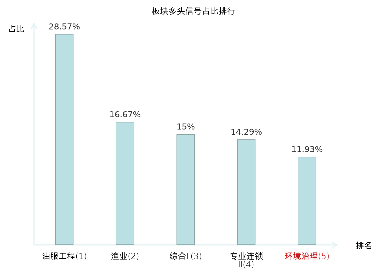全市场所有行业板块中主力多头信号占比排名中,油服工程板块位居第一。房地产服务板块名次提升最快,较昨日上升110位。