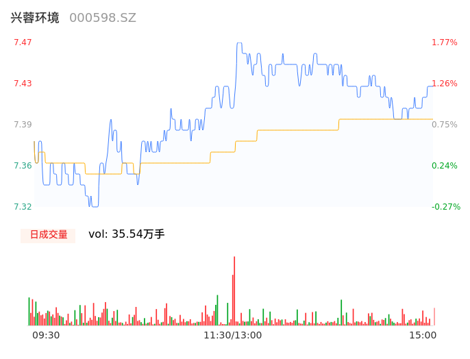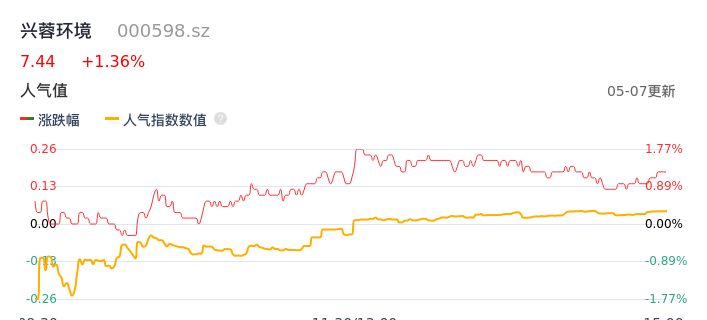 05月07日,兴蓉环境收报7.44,股价涨幅1.36%,成交金额2.63亿元,换手率1.20%。
