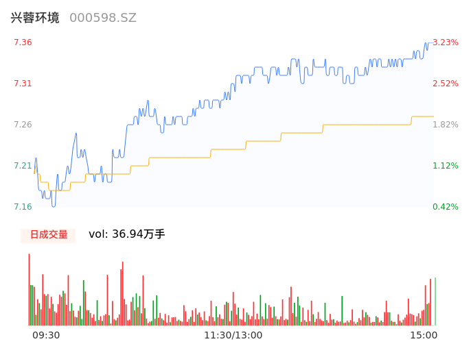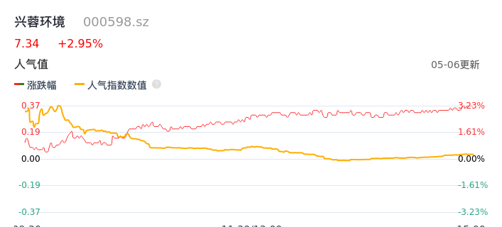 05月06日,兴蓉环境收报7.34,股价涨幅2.95%,成交金额2.69亿元,换手率1.24%。