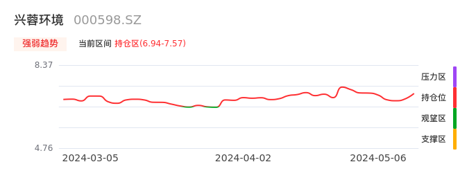 我们来看一下该股的九方特色指标强弱趋势的情况:兴蓉环境自03月29日从观望区上穿到持仓区。股价近期在多头区域持续强势上扬,上升动能仍较为充足,可积极关注。后续重点关注上方压力位:7.57元是否能突破上攻。