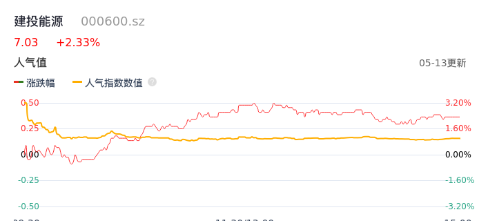 05月13日,建投能源收报7.03,股价涨幅2.33%,成交金额2.22亿元,换手率2.92%。
