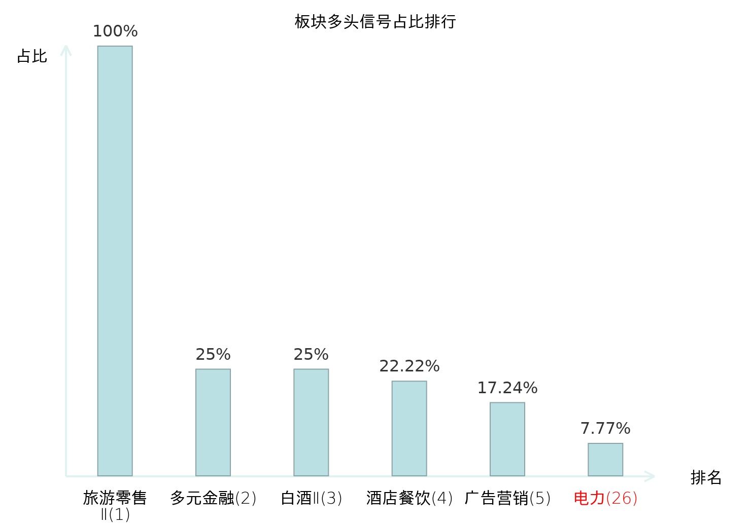 从主力宝信号数据分析,韶能股份所属的电力板块中共有8只股票发出主力多头信号,主力多头信号占比在全行业中排名第26位,较昨日上升35位。较高的排名表明主力当日买入意愿较强,此次排名上升可能反映了主力对该板块态度的积极变化。全市场所有行业板块中,旅游零售Ⅱ板块的主力多头信号占比最高,位居第一。旅游零售Ⅱ板块名次提升最快,较昨日上升130位。这些变动揭示了不同行业间主力资金偏好的变化,为投资者提供了关于市场情绪和潜在投资机会的重要参考。