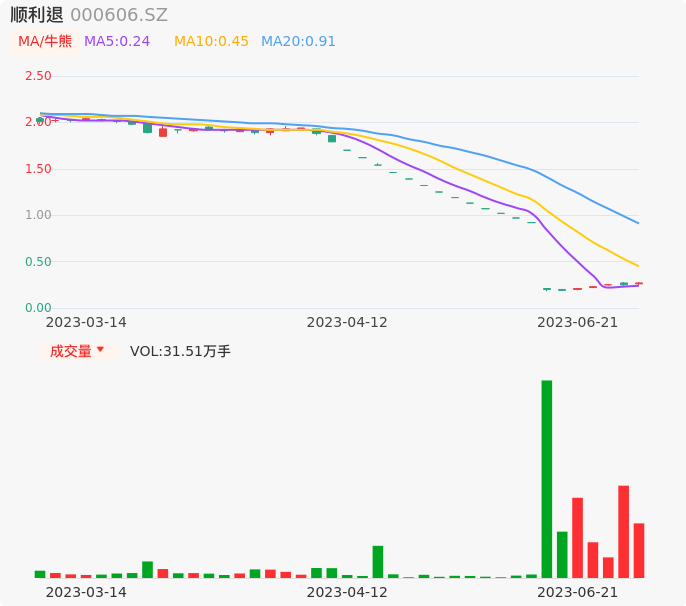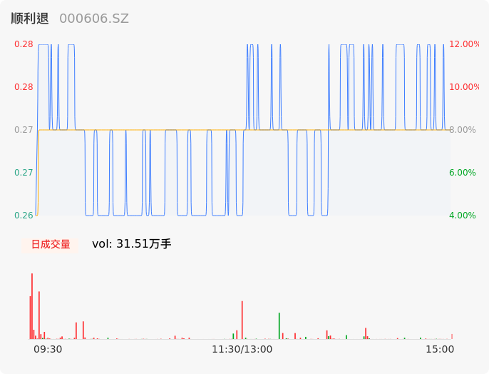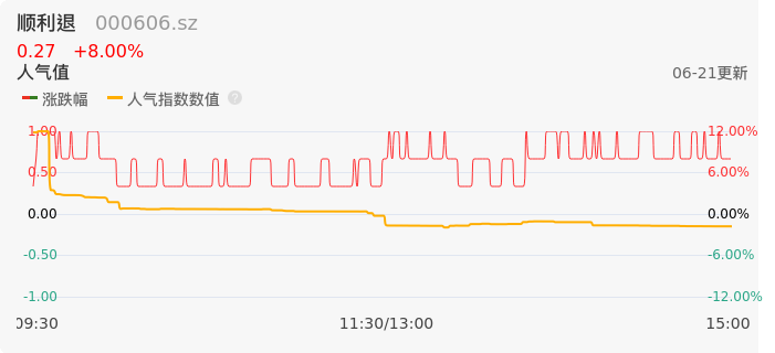 06月21日,顺利退收报0.27,股价涨幅8.00%,成交金额850.18万元,换手率4.11%。