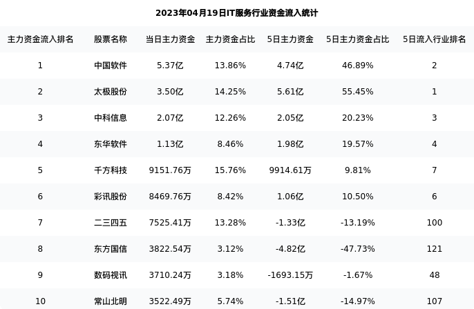从主力资金流向来看,IT服务行业今日主力资金流入221.41亿元,在所有申万二级行业中排名:17/131。