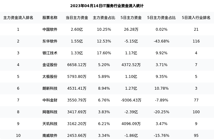 从主力资金流向来看,IT服务行业今日主力资金流入192.36亿元,在所有申万二级行业中排名:9/131。